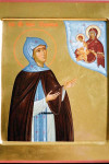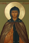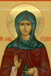 Но́щи стра́стныя избе́гши, Богому́драя Софи́е преподо́бная,/ к Незаходи́мому же Со́лнцу, Христу́, прише́дши,/ умертви́ла еси́ плотско́е мудрова́ние посто́м же, воздержа́нием и моли́твами,/ показа́ся равна́ А́нгелом,/ на земли́ бо поживе́ и ду́хи нечи́стыя от челове́к отгна́ла еси́,/ и разли́чная исцеле́ния подава́еши, от мно́гих бед и зол избавля́еши,/ Софи́е преподо́бная,// моли́ спасти́ся душа́м на́шим.