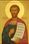 Морску́ю пла́вая пучи́ну ку́плею,/ от восто́ка тща́лся еси́ к се́веру,/ но Бо́гу призва́вшу тя,/ я́коже Матфе́й мы́тницу, ты же ку́плю оста́вль/ и Тому́ после́довал еси́ кро́вию му́чения,/ вре́менными искупи́в непроходи́мая,// и вене́ц прия́л еси́ непобеди́мый.