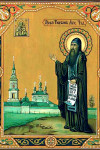 Христо́вою любо́вию уязви́вся, преподо́бне,/ во след Его́ невозвра́тно ше́ствовал еси́,/ посто́м и воздержа́нием плотски́я стра́сти умертви́л еси́,/ бде́нием же и моли́твами вселука́ваго врага́ до конца́ низложи́л еси́/ и слеза́ми, я́ко еле́ем, свещу́ све́тлу себе́ угото́вал еси́;/ те́мже в Небе́сныя оби́тели невозбра́нно вшел еси́,/ иде́же, ра́дуяся, Го́сподеви предстои́ши,/ Ему́же приле́жно моли́ся, мо́лим тя,/ я́ко да ми́лостив нам бу́дет в День стра́шнаго Его́ прише́ствия,/ и да не пребу́дем и мы вне черто́га Христо́ва,/ но да сподо́бит ны одесну́ю Себе́ ста́ти/ моли́твами твои́ми, преподо́бне, да зове́м ти:// ра́дуйся, Богому́дре о́тче наш Ти́хоне.