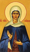Якщо одні із жінок вирізняються ощадливістю, а інші благочестям, бо важко поєднувати обидві якості, то вона перевершувала всіх і тим, і іншим. В обох якостях досягла вона вершини досконалості й обидві вміла поєднати в одній собі. Одне у неї не завдавало шкоди іншому, і одне іншим взаємно підтримувалося. Чи не пропустила вона якийсь час і місце молитви? Про це у неї щодня була найперша думка. Краще ж сказати, хто, приступаючи до молитви, мав стільки уповання отримати прохане?»