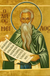 Слез твои́х тече́ньми пусты́ни безпло́дное возде́лал еси́,/ и и́же из глубины́ воздыха́ньми во сто трудо́в уплодоноси́л еси́,/ и был еси́ свети́льник вселе́нней, сия́я чудесы́, Ни́ле, о́тче наш,// моли́ Христа́ Бо́га спасти́ся душа́м на́шим.