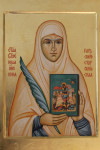 Бlжeннаz и4нокине параскevо, пaче житіS хrтA возлюби1вшаz, во стрaнствіи земнёмъ п0двигомъ ю3р0дства бGу послужи1вшаz, ри1зою безстрaстіz ўкраси1вшаzсz, прaвыz вёры чистоты2 ревни1тельнице, моли2 хrтA бGа сп7сти1сz душaмъ нaшымъ.