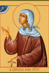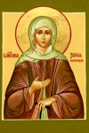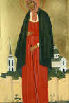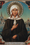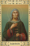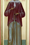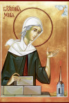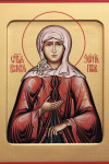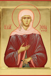 НищетY хrт0ву возлюби1вши, безсмeртныz трапeзы нhнэ наслаждaешисz, безyміемъ мни1мымъ безyміе мjра њбличи1вши, смирeніемъ кrтнымъ си1лу б9ію воспріsла є3си2. сегw2 рaди дaръ чудодёйственныz п0мощи стzжaвшаz, xeніе бlжeннаz, моли2 хrта бGа и3збaвитисz нaмъ t всsкагw ѕлA покаsніемъ.