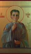 Вы́шния красоты́ жела́я,/ ни́жния сла́дости теле́сное яде́ние тща́тельно оста́вил еси́,/ нестяжа́нием су́етнаго ми́ра, возлюби́л еси́ а́нгельское житие́,/ преходя́ сконча́вся, Иоа́нне блаже́нне;// с ни́миже моли́ Христа́ Бо́га непреста́нно о всех нас.