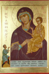 Днесь, ве́рнии лю́дие, духо́вно торжеству́ем,/ прославля́юще Засту́пницу усе́рдную ро́да христиа́нскаго,/ и притека́юще к пречи́стому Ея́ о́бразу, взыва́ем си́це:/ о, Преми́лостивая Влады́чице Богоро́дице,/ пода́ждь нам неча́янную ра́дость,/ обремене́нным грехи́ и скорбьми́ мно́гими,/ и изба́ви нас от вся́каго зла,// моля́щи Сы́на Твоего́, Христа́ Бо́га на́шего,/ спасти́ ду́ши на́ша.