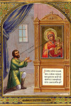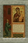 Днeсь, вёрніи лю1діе, дух0внw торжествyемъ, прославлsюще застyпницу ўсeрдную р0да хrтіaнскагw, и3, притекaюще къ пречcтому є3S џбразу, взывaемъ си1це: q премлcтиваz вLчце бGор0дице, подaждь нaмъ нечazнную рaдость, њбременє1ннымъ грэхи2 и3 скорбьми2 мн0гими, и3 и3збaви нaсъ t всsкагw ѕлA, молsщи сн7а твоего2 хrтA бGа нaшего, сп7сти2 дyшы нaшz.