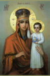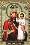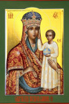 Пренепоро́чная Де́во,/ отображе́ние Ли́ка Твоего́ чту́щих благода́рныя да́ры прие́млеши,/ живы́м и ме́ртвым помога́еши,/ гра́д и страну́ на́шу заступа́еши,/ и к Сы́ну Твоему́ моли́твы прино́сиши,// и спа́саеши все́х на́с.