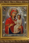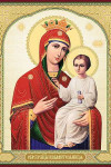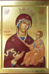 На іконі «Визволителька» зображена Пресвята Богородиця, Яка на лівій руці тримає Богомладенця, Котрий благословляє правицею.