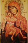 О, Пресвята́я и преблагослове́нная Ма́ти Го́спода, Бо́га и Спа́са на́шего Иису́са Христа́, Ми́лостивая Богоро́дице и Присноде́во Мари́е! Припа́дая к святе́й и чудотво́рней ико́не Твое́й, смире́нно мо́лимся Тебе́, Благо́й и Милосе́рдой Засту́пнице на́шей: вонми́ гла́су гре́шных моле́ний на́ших, не пре́зри воздыха́ний от души́, ви́ждь ско́рби и беды́ на́с обыше́дшия, и я́ко любвеоби́льная вои́стину Ма́ти потщи́ся на по́мощь на́м безпомо́щным, уны́лым, во мно́гия и тя́жкия грехи́ впа́дшим и при́сно прогневля́ющим Го́спода и Созда́теля на́шего, Его́же умоли́, Предста́тельнице на́ша, да не погуби́т на́с со беззако́ньми на́шими, но яви́т на́м человеколю́бную Свою́ ми́лость. Испроси́ на́м, Влады́чице, у бла́гости Его́, теле́сное здра́вие и душе́вное спасе́ние, благоче́стное и ми́рное житие́, земли́ плодоно́сие, возду́ха благорастворе́ние, дожди́ благовре́менны и благослове́ние свы́ше на вся́ блага́я дела́ и начина́ния на́ша, и я́коже дре́вле призре́ла еси́ ми́лостиво на смире́нное славосло́вие послу́шника Афо́нскаго, воспева́вшаго Ти́ пе́снь хвале́бную пред Пречи́стою ико́ною Твое́ю, и посла́ла еси́ к нему́ Арха́нгела Гаврии́ла научи́ти его́ пе́ти пе́снь небе́сную, е́юже славосло́вят Тя́ а́нгели горе́, си́це приими́ благоутро́бно и на́ше ны́не усе́рдно приноси́мое Тебе́ молитвосло́вие, и принеси́ е́ Сы́ну Твоему́ и Бо́гу, да ми́лостив бу́дет О́н на́м гре́шным, и проба́вит ми́лость Свою́ все́м чту́щим Тя́ и с ве́рою покланя́ющимся Свято́му О́бразу Твоему́. О, Цари́це Всеми́лостивая, Ма́ти Бо́жия Всеблага́я, простри́ к Нему́ Богоно́сныя Твои́ ру́це, и́миже Его́, я́ко младе́нца носи́ла еси́, и умоли́ Его́ вся́ ны́ спасти́ и изба́вити поги́бели ве́чныя. Яви́ на́м, Влады́чице, Твоя́ щедро́ты: боля́щия исцели́, скорбя́щия уте́ши, бе́дствующим помози́: благопоспеши́ все́м на́м носи́ти и́го Христо́во в терпе́нии и смире́нии, сподо́би на́с благоче́стно житие́ сие́ земно́е сконча́ти, христиа́нскую непосты́дную кончи́ну получи́ти, и Небе́сное Ца́рствие унасле́дити, Ма́терним хода́тайством Твои́м к ро́ждшемуся от Тебе́ Христу́ Бо́гу на́шему, Ему́же со Безнача́льным Его́ Отце́м и Пресвяты́м Ду́хом, подоба́ет вся́кая сла́ва, че́сть и поклоне́ние, ны́не и при́сно, и во ве́ки веко́в. Ами́нь.