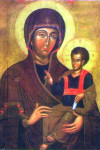 На лівій руці Богоматір тримає Спасителя, а вільною рукою, ледь торкаючись ніжки Сина, показує на Нього, ніби закликаючи всіх людей йти Його дорогою, жити за Його заповідями. Христос, за візантійською традицією, зображений з лицем дорослої людини, як передвічний Бог. В одній руці Він тримає сувій, а іншою благословляє Матір і весь світ, який спасе Своїми стражданнями. Жестами рук, поглядами очей Богородиця та Христос звертаються до людей. Вони не відречені від земного світу, але своїм духовним світлом підносяться над ним у безмежжя небес, за межі земного людського існування.