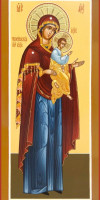 На іконі Пресвята Богородиця зображена такою, що стоїть з Божественним Немовлям на лівій руці. Спаситель звернений ликом до людей, правою рукою Він благословляє, а в лівій тримає сувій.