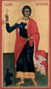 Святому відрубали голову, коли він молився, дякуючи Богові за свою долю († 258).