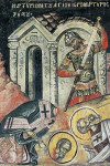 Огне́м Боже́ственным распали́в се́рдце твое́,/ огнь страсте́й до конца́ испепели́л еси́,/ страда́льцев утвержде́ние, Богоно́се му́чениче Лавре́нтие,/ и в страда́ниих вопия́л еси́ ве́рно:// ничто́же мя разлучи́т любве́ Христо́вы.