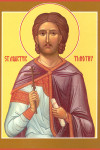 Одного разу був приведений до нього на допит Тимофій, чтець місцевої церкви. Він був родом із селища Перапеї і за двадцять днів до того одружився з дівицею Маврою. Після того, як він сповідав себе християнином перед ігемоном, той забажав побачити священні книги, котрі він читає, але святий відмовився їх віддати. Тоді Арріан наказав катувати Тимофія. Йому у вуха вклали дві розпечені палиці, і через величезний біль у мученика витекли очі, тож він втратив зір. Попри це святий не зрікся Христа, тож тортури продовжилися. Йому зв’язали руки за спиною та вклали в рот шматок дерева, а його самого підвісили вниз головою з прив’язаним до шиї каменем.