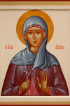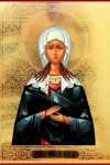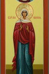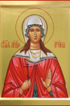 Крёпкw дyшу, їри1но, њполчи1ла є3си2 вёрою, ћвэ лукaваго посрами1вши, и3 ко хrтY привелA є3си2 тмы2 людeй мн0жєства, бlжeннаz: и3 порфЂру t кровeй носsщи, со ѓгGлы нhнэ весели1шисz.