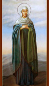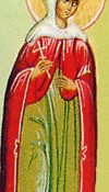 Дёвства твоегw2 добр0тами пред8wчи1стивши дyшу твою2, и3 на высотY мучeніемъ востеклA є3си2, ґкmлjно всечcтнaz, люб0вію женихA твоегw2 хrтA ўzзви1вшисz, є3мyже со ѓгGлы предстои1ши веселsщисz: съ ни1миже не престaй молsсz њ всёхъ нaсъ.
