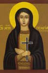 Вре́менная презре́вши/ и Небе́сных благ прича́стница бы́вши,/ вене́ц страда́ния ра́ди прии́мши,/ Пелаги́е всечестна́я,/ я́ко дар принесла́ еси́ кро́вныя пото́ки Влады́це Христу́./ Моли́ от бед изба́вити нас,// твою́ па́мять почита́ющих.
