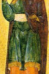 Єгипетський край, град же Гермопол, батьківщиною був мученика Савина, мужа славного у краю тому і князя града свого. За царювання Діоклітіана, який розпочав гоніння люте, бентежив цілий Єгипет та багато кого із вірних мучив і убивав, Савин покинув дім свій, і владу, і багатство, і всіх ближніх та, вийшовши таємно із міста Гермополя, в одному віддаленому селі сховався з іншими християнами, які переховувалися. І, в хатині малій і бідній замкнувшись, перебував у пості й молитвах день і ніч. Ідолослужителі вчинили пошуки великі Савина, князя гермопольським, щоб взяти його на муки, і, ніде його не знаходячи довгий час, журилися. Жебрак один, котрий приходив до блаженного Савина, їжу і все необхідне із руки його приймаючи, наслідуючи Іуду-зрадника, прийшов до ідолослужителів і сказав: “Що мені дасте, коли скажу вам, де є Савин, якого шукаєте?” Вони ж дали йому два золотих і за ним до того села пішли. Про хатину ту довідавшись, обступили її і в двері стукали. Було ж зі святим Савином у хатині тій шестеро християн, і думали, що хтось із вірних братів до них задля якоїсь потреби прийшов, — відчинили хатину, ідолослужителі ж одразу, з великим рвінням всередину вскочивши, всіх схопили й зв’язали. Окремо ж зв’язали святого Савина двома веригами важкими і привели його до ігемона того краю на ім’я Аріан. Допитуваний був на нечестивому судищі і довго до ідольської жертви примушуваний — не відвернувся від Христа. За Нього мучений був жорстоко, кігтями залізними обдирали його і вогнем палили; врешті, в річці втоплений, закінчив мучеництва подвиг і до Подвигоположника Христа вінець перемоги прийняти пішов. Також з ним взяті шестеро християн мучені були, таку саму на небесах від Господа отримали славу.