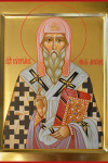 Я́ко Све́тлаго Со́лнца светоза́рныя зве́зды,/ Тро́ическим Све́том озаря́ете сердца́ ве́рных,/ пренесе́нием честны́х моще́й ва́ших,/ Тро́ицы сосу́ди яви́стеся чи́стии ва́шим житие́м,/ и научи́сте лю́ди тве́рдо ве́ре Христо́ве,/ и скве́рну отгна́сте ва́шими святы́ми за́поведьми,/ и упасо́сте до́бре Христо́во ста́до, пору́ченное вам,/ Богому́дре Киприа́не, со сла́вным Фо́тием и со Ио́ною тве́рдым,// моли́теся Христу́ Бо́гу, да спасе́т ду́ши на́ша.