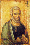 Ри́ма не оста́вль, к нам прише́л еси́,/ честны́ми вери́гами, я́же носи́л еси́, апо́столов первопресто́льне./ И́мже ве́рою покланя́ющеся, мо́лимся:/ твои́ми к Бо́гу моли́твами// да́руй нам ве́лию ми́лость.