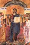 Въ вhшнихъ живhй, хrтE цRю2, всёхъ ви1димыхъ и3 неви1димыхъ тв0рче и3 зижди1телю, и4же дни6 и3 нHщи, временA и3 лBта сотвори1вый, бл7гослови2 нhнэ вэнeцъ лёта, соблюди2 и3 сохрани2 въ ми1рэ грaдъ и3 лю1ди тво‰, многомлcтиве.