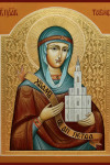 Апо́столом сотаи́ннице, ми́лостивая Тави́фо,/ оби́тели же́нския нача́ло положи́ла еси́/ и бе́дным одея́ние была́ еси́,/ послу́шнице смире́нная,/ сло́ву апо́стола Петра́ повину́вшися,/ из ме́ртвых си́лою Христо́вою возста́ла еси́/ и ны́не на Небесе́х све́тло пра́зднуеши./ Те́мже моли́ Христа́ Бо́га// всем, помина́ющим тя, дарова́ти живо́т ве́чный.