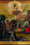 Одного разу, коли перед Престолом Божим постали Святі Ангели, з’явився між ними і сатана. Господь Бог запитав сатану, чи не бачив він раба Його Іова, чоловіка праведного і чужого всякого пороку. Сатана зухвало відповідав, що недарма богобоязливий Іов — Бог береже його і примножує його багатства, але якщо наслати на нього нещастя, то він перестане благословляти Бога. Тоді Господь, бажаючи показати терпіння Іова і віру, сказав сатані: «Все, що є в Іова, Я віддаю в твої руки, тільки самого його не торкайся». Після цього Іов раптово позбувся всіх своїх багатств, а потім і всіх своїх дітей. Праведний Іов звернувся до Бога і сказав: «Нагим вийшов я з утроби матері моєї, нагим повернуся до матері своєї землі. Господь дав, Господь і взяв. Хай буде Імʼя Господнє благословенне!» І не згрішив Іов перед Господом Богом, і не вимовив жодного нерозумного слова.