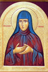 Ћже д¦омъ с™hмъ и3здётска хrтY њбручeна былA є3си2, и3 сокрhвши себE t мjра въ под0біи мyжестэмъ, пещeрное затворeніе слaдостнэ воспріsла є3си2. моли1сz њ нaсъ, досіfeе слaвнаz, женихY твоемY, да и3збaвитъ нaсъ t мрaка грэх0внагw и3 сп7сeтъ дyшы нaшz.