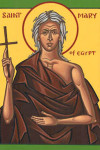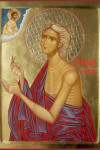 Йому прийшов у душу помисел — чи не привид це вводить його в спокусу? Преподобна подвижниця, обернувшись, підвела його із землі та сказала: “Чого тебе, авво Зосимо, так бентежать помисли? Не привид я. Я — жінка грішна й негідна, хоч і огороджена святим Хрещенням”.