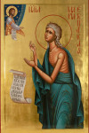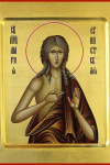 “О Благолюбива Владичице наша, Богородице! Ти не погордувала молитвою моєю негідною. Слaва Богові, Який приймає Тобою покаяння грішників. Настав тепер мені час виконати обіцянку, в якій Ти була Поручителькою. Нині, Владичице, направ мене на шлях покаяння”.