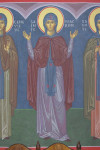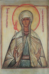 Пла́менная ве́ры и́стинныя провозве́стница/ и гра́да твоего́ засту́пница еси́,/ о свята́я ма́ти Генове́фо,/ изба́ви ны от паде́ний грехо́вных,/ и потре́бная блага́я ниспосли́, и гла́дныя напита́й,/ и Го́спода моли́ неуста́нно// о спасе́нии душ на́ших.