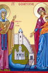 Защи́тнице христиа́н благода́тная,/ изде́тска храм Бо́жий возлюби́вшая,/ де́вство свое́ Христа́ ра́ди соблю́дшая,/ град Пари́ж от ва́рваров моли́твою дре́вле спа́сшая,/ и в но́вая времена́ правосла́вным та́мо споспешеству́ющая:/ ны́не же на Небесе́х Го́сподеви предстои́ши,/ свята́я ма́ти Генове́фо,/ не забу́ди предста́тельствовати те́пле о всех// чту́щих святу́ю па́мять твою́.