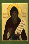 Завётъ пастыреначaльника и3сп0лнивъ, стaрчества бlгодaть наслёдовалъ є3си2, болёзнуz сeрдцемъ њ всёхъ съ вёрою притекaющихъ къ тебЁ, тёмже и3 мы2, ч†да тво‰, съ люб0вію вопіeмъ ти2: џтче с™hй ґмвр0сіе, моли2 хrтA бGа сп7сти1сz душaмъ нaшымъ.