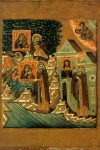 Во nби1тели сeргіа прпdбнагw житію2 и4ноческому д0брэ навhкъ, вsщшагw рaди безм0лвіz и3 п0двига въ пустhню ўдали1тисz возжелёлъ є3си2, и3, дyхомъ б9іимъ води1мь, въ предёлы земли2 гaличскіz пришeлъ є3си2, и3 тaмw въ пустhни їкHну м™ре гDни чудeснw њбрёлъ є3си2, съ нeюже вели1каz и3 слaвнаz соверши1въ, дaже до предёлъ чyхломскихъ дости1глъ є3си2 и3 tсю1ду въ р†йскіz nби1тєли всели1лсz є3си2, ґвраaміе бGон0сне, џтче нaшъ.