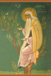 В тебе́, о́тче, изве́стно спасе́ся е́же по о́бразу:/ прии́м бо крест, после́довал еси́ Христу́/ и, де́йствуя, учи́л еси́ презира́ти у́бо плоть, прехо́дит бо,/ прилежа́ти же о души́ ве́щи безсме́ртней.// Те́мже и со А́нгелы сра́дуется, преподо́бне Дави́де, дух твой.
