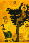 Сад присноцвету́щ, доброде́телей плоды́ принося́й,/ яви́лся еси́ на садо́вне дре́ве, я́ко благопе́снивая пти́ца;/ рай же па́че, жи́зни дре́во, Го́спода, в се́рдцы твое́м прие́м,/ я́ко возде́лав, Богому́дре,/ и́мже пита́еши нас благода́тию;// при́сно моли́ о нас, Дави́де всеблаже́нне.