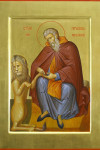 Возгоре́вся раче́нием Го́рним,/ же́стость пусты́ни Иорда́новы па́че всех ми́ра сла́дких предпоче́л еси́;/ отону́дуже повину́ся тебе́ зверь да́же до сме́рти, о́тче,/ послу́шне и жа́лостне на гро́бе твое́м сконча́ся,/ просла́вльшу тя та́ко Бо́гу,/ к Нему́же моля́ся, и о нас,// о́тче Гера́симе, помина́й.