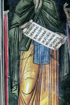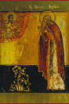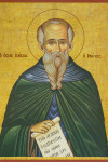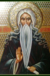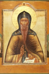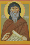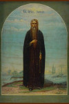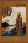 T млaда звaнію гдcа твоегw2 послёдовалъ є3си2 ўсeрднw, бл7жeнне, вс‰, ±же въ мjрэ кр†снаz, є3гw2 рaди њстaвивъ. крeстъ тв0й на рaмена взeмъ, всели1лсz є3си2 въ пусты1ню, и3, тaмw а4гг7льски пожи1въ, тёло твое2 пост0мъ и3 мл7твами и3знури1лъ є3си2, и3 мнHгимъ пyть бы1лъ є3си2 ко сп7сeнію, вс‰ возводS къ бжcтвеннэй высотЁ, паjсіе прпdбне, nтцє1въ и3 п0стникwвъ твeрдое њсновaніе.