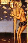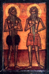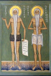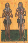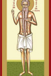 Удали́в себе́ челове́ческаго сожи́тельства,/ в пеще́рах ка́менных и разсе́линах пожи́л еси́,/ жела́нием Боже́ственным и любо́вию, Пе́тре, Го́спода твоего́,/ от Него́же вене́ц прия́л еси́.// Моли́ непреста́нно спасти́ся нам.