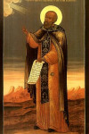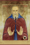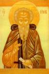 Сле́з твои́х тече́ньми пусты́ни безпло́дное возде́лал еси́,/ и и́же из глубины́ воздыха́ньми во сто трудо́в уплодоноси́л еси́,/ и был еси́ свети́льник вселе́нней,/ сия́я чудесы́, Пи́мене о́тче наш.// Моли́ Христа́ Бо́га, спасти́ся душа́м на́шим.