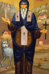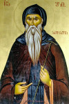 Якийсь Євагрій, знатний царедворець, полюючи за звичаєм за річкою Курою, простежив за голубом, котрий носив їжу пустельникові, і знайшов його, зануреного в молитву, з піднятими до неба руками. Він був так вражений зустріччю з цією людиною, яка сховалася від світу, яка молитовно стоїть у пустелі перед обличчям Єдиного Бога, що, зачарувавшись цим, раптово усвідомив і в собі зречення від усього мирського та почав просити чудового пустельника взяти його під своє керівництво й трудитися в печері, цілком віддавшись Богові.