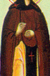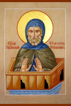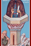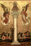 Вы́шних ищя́й, вы́шним* совокупля́яйся,/ и колесни́цу о́гненную столп соде́лавый:/ тем собесе́дник А́нгелом был еси́, преподо́бне,/ с ни́ми Христу́ Бо́гу// моля́ся непреста́нно о всех нас.