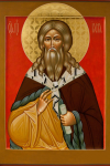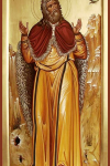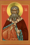 Прbр0че и3 прови1дче вели1кихъ дёлъ бGа нaшегw, и3ліE великоимени1те, вэщaніемъ твои1мъ ўстaвивый водотHчныz џблаки, моли2 њ нaсъ є3ди1наго чlвэколю1бца.