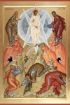 Ученики зі страху попадали на землю. Іісус Христос підійшов, доторкнувся до них і сказав: «встаньте і не бійтеся». Ученики встали і побачили Іісуса Христа у звичайному вигляді.