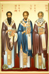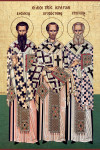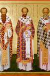 Тропарь святителям Василию Великому, Григорию Богослову и Иоанну Златоусту, глас 4