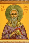 Измла́да Христа́ возлюби́в, пресла́вне,/ и Того́ соблюда́я Боже́ственныя за́поведи,/ к Тому́ прите́кл еси́ весь цел,/ Ми́роне всече́стне,/ и со А́нгелы мо́лишися приле́жно./ Проси́ всем почита́ющим па́мять твою́// оставле́ния грехо́в.