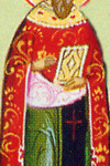 И#змлaда хrтA возлюби1въ, преслaвне, и3 тогw2 соблюдaz бжcтвєнныz зaпwвэди, къ томY притeклъ є3си2 вeсь цёлъ, мЂрwне всечeстне, и3 со ѓгGлы м0лишисz прилёжнw. проси2 всBмъ почитaющымъ пaмzть твою2 њставлeніz грэхHвъ.