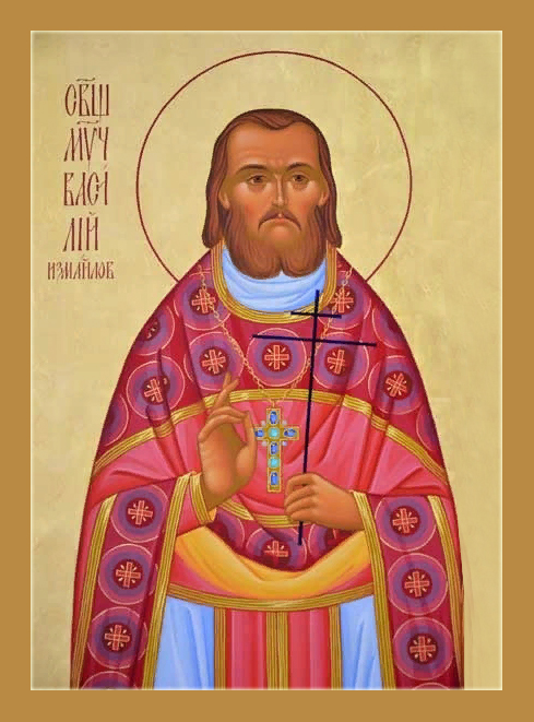 Священномученик Василій (Василій Васильович Ізмайлов) народився 4 червня 1885 року в місті Вишньому Волочку Тверської губернії. У 1905 році Василій закінчив Мінську духовну семінарію, у 1910-му — Санкт-Петербурзьку духовну академію і був направлений викладати словесність і дидактику до Парицького жіночого училища Мінської губернії. 7 грудня 1913 року єпископ Мінський Митрофан (Краснопольський) просив Навчальний комітет перевести Василія Ізмайлова до Мінської духовної семінарії, вважаючи, що це буде корисним для навчальної справи семінарії, і дав йому чудову характеристику. 15 січня 1915 року Василія Васильовича призначили викладачем основного, догматичного і морального богослов’я до Мінської Духовної семінарії. Невідомо, коли він був висвячений на священника, але, коли почалися гоніння від безбожної влади, він уже служив священником у Покровській церкві в селі Слобода-Озерицька Мінського району. Возведений у сан протоієрея.