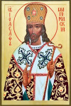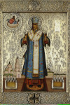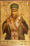 Святи́телю Христу́ Бо́гу возлю́бленне,/ пра́вило ве́ры и о́браз милосе́рдия лю́дем был еси́,/ бде́нием же, посто́м и моли́твою,/ я́ко свети́льник пресве́тлый просия́л еси́,/ и просла́влен от Бо́га яви́лся еси́;/ те́лом у́бо в нетле́нии почива́я,/ ду́хом же престо́лу Бо́жию предстоя́,/ чудеса́ пресла́вно источа́еши./ Моли́ Христа́ Бо́га,// да утверди́т нас в Правосла́вии и благоче́стии/ и спасе́т ду́ши на́ша.
