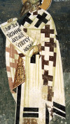 Правослaвіz настaвниче, бlгочeстіz ўчи1телю и3 чистоты2, вселeнныz свэти1льниче, ґрхіерewвъ бGодухновeнное ўдобрeніе, кmрjлле премyдре, ўчeньми твои1ми вс‰ просвэти1лъ є3си2: цэвни1це дух0внаz, моли2 хrтA бGа, сп7сти1сz душaмъ нaшымъ.